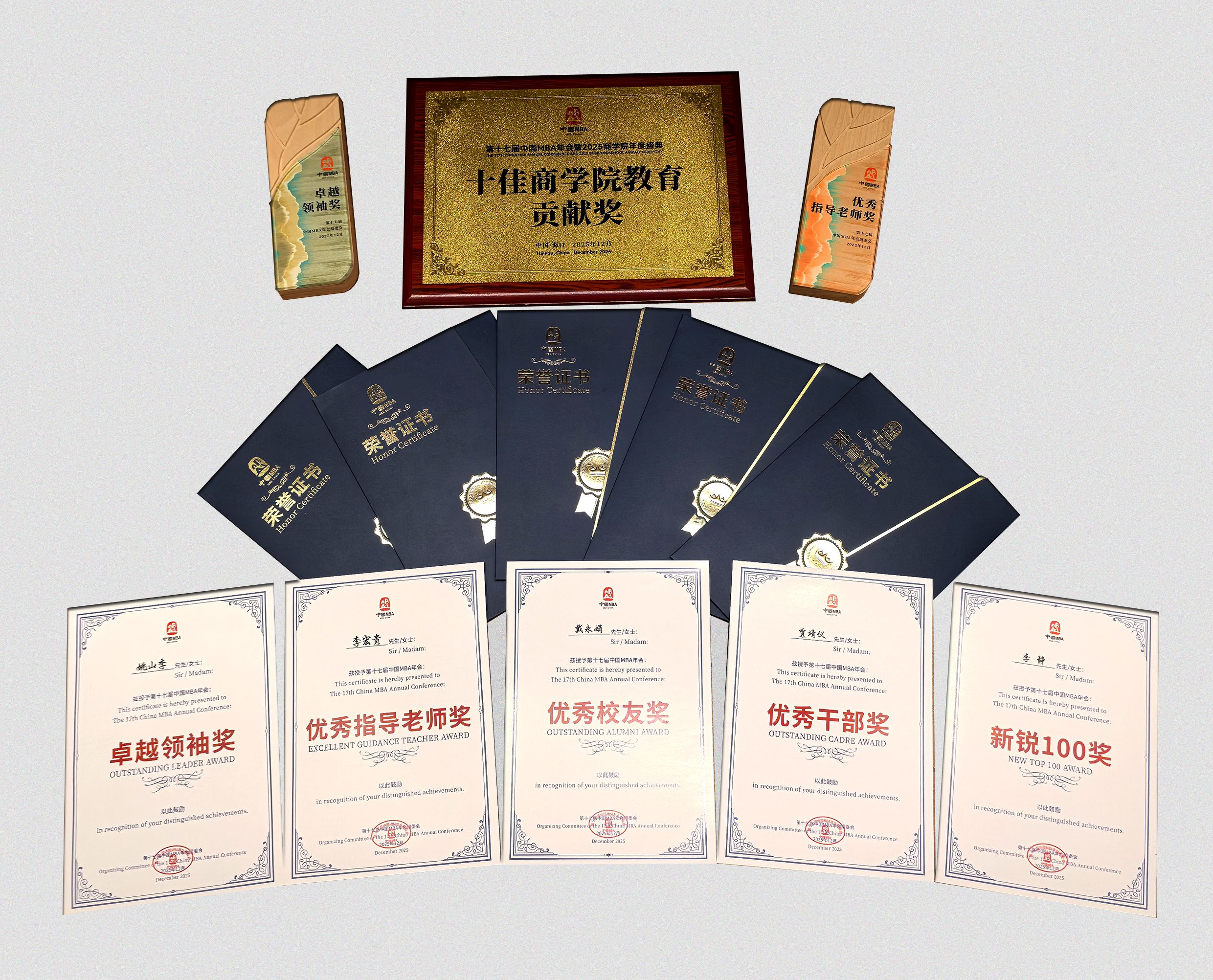 在表彰环节,学院屡获殊荣。学院荣膺“十佳商学院教育贡献奖”、姚山季荣获“卓越领袖奖”、李宏贵荣获 “优秀指导老师奖”、戴永娟校友荣获 “优秀校友奖”、贾靖仪同学荣获“优秀干部奖”、李静同学荣获“新锐100奖”等。