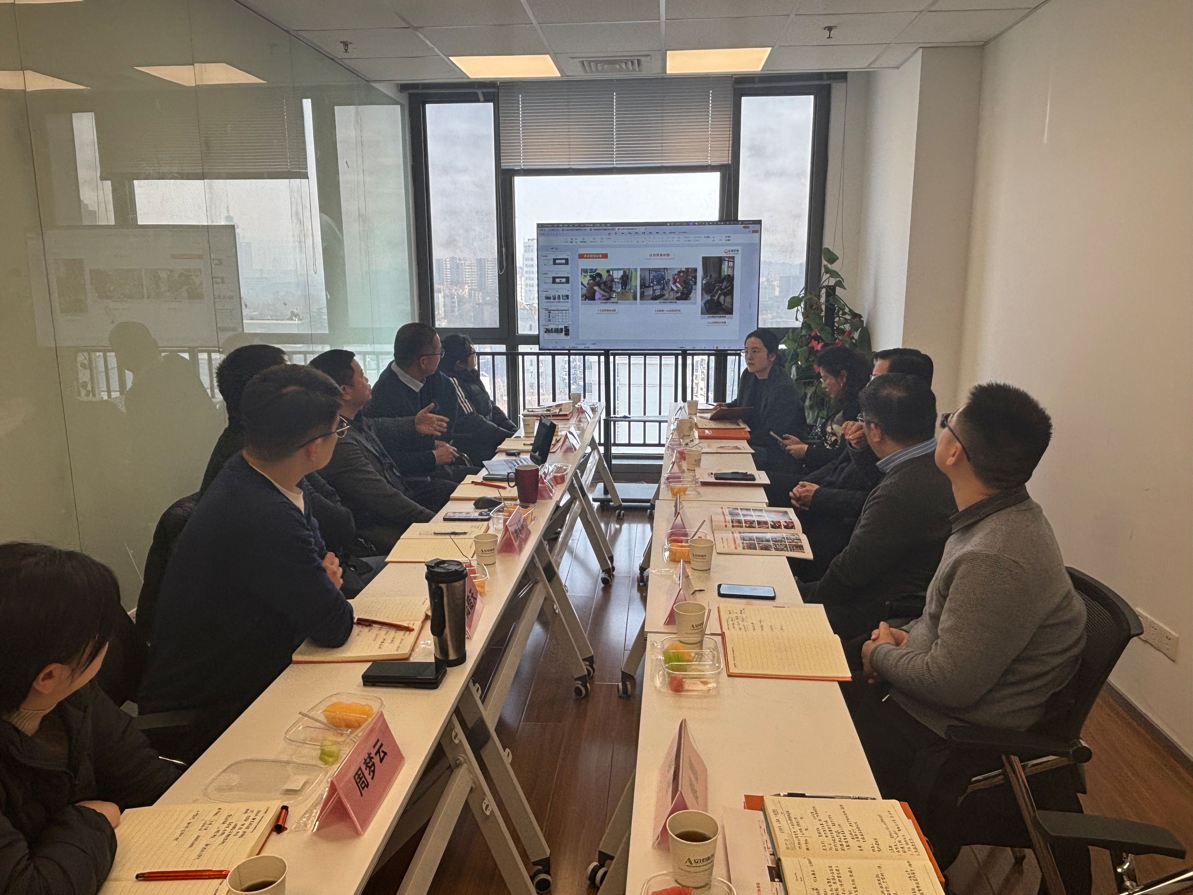 最后,双方在公司会议室举行座谈交流。企业创始人张祺对我校师生的到访表示热烈欢迎,并全面介绍了公司的发展历程、核心业务与行业布局。他提到,安润泽康作为南京市鼓楼区硅巷重点孵化的科技型中小企业,是集养老产业咨询、适老化产品供应链、适老化改造、智能养老平台服务于一体的综合性服务商,业务已覆盖江苏、浙江、安徽等多个省份,在适老化领域积累了丰富的实战经验与行业资源。同时,他结合当前银发经济发展趋势,分析了适老化产业的行业发展机遇、未来发展方向和人才需求痛点。