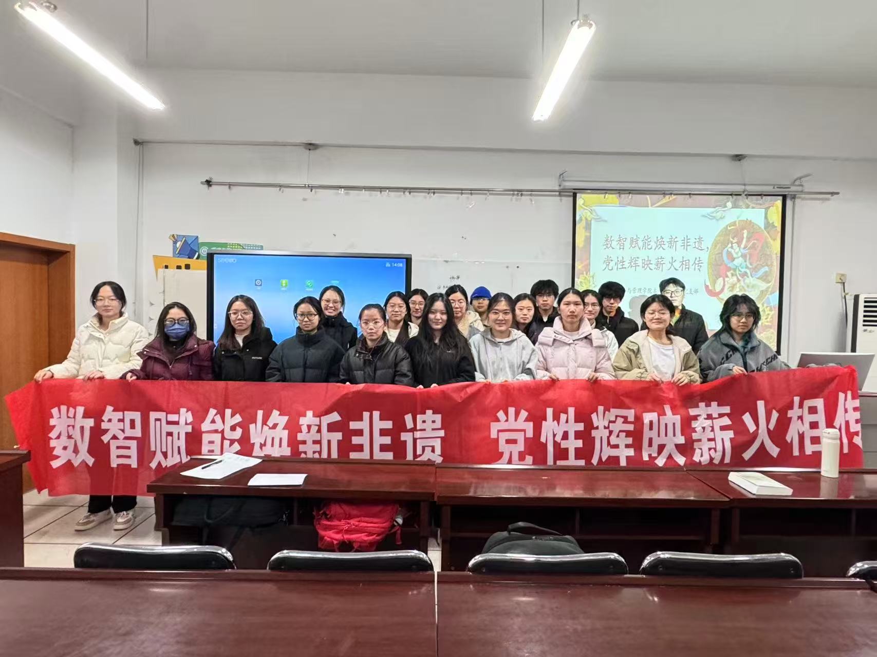 为深入学习贯彻习近平文化思想,推动中华优秀传统文化创造性转化与创新性发展,12月10日下午,经济与管理学院本研联合第四党支部开展“数智赋能焕新非遗,党性辉映薪火相传”主题党日活动。活动由党支部书记王娜主持。